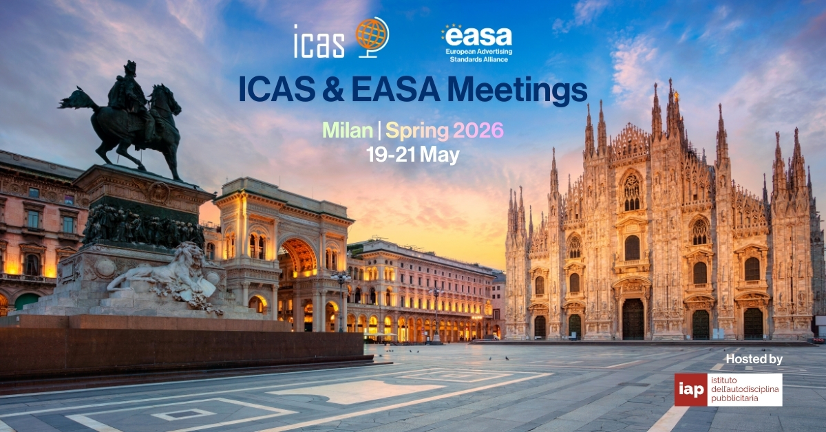 We look forward to welcoming you in Milan from 19-21 May 2026 for the ICAS & EASA Meetings 2026, hosted by the Istituto dell’Autodisciplina Pubblicitaria (IAP). We hope that many of you will be able to join us!